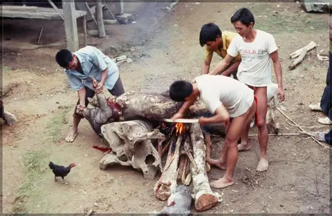 Some of these photos show the pagan priests offering some animals during rice harvest.